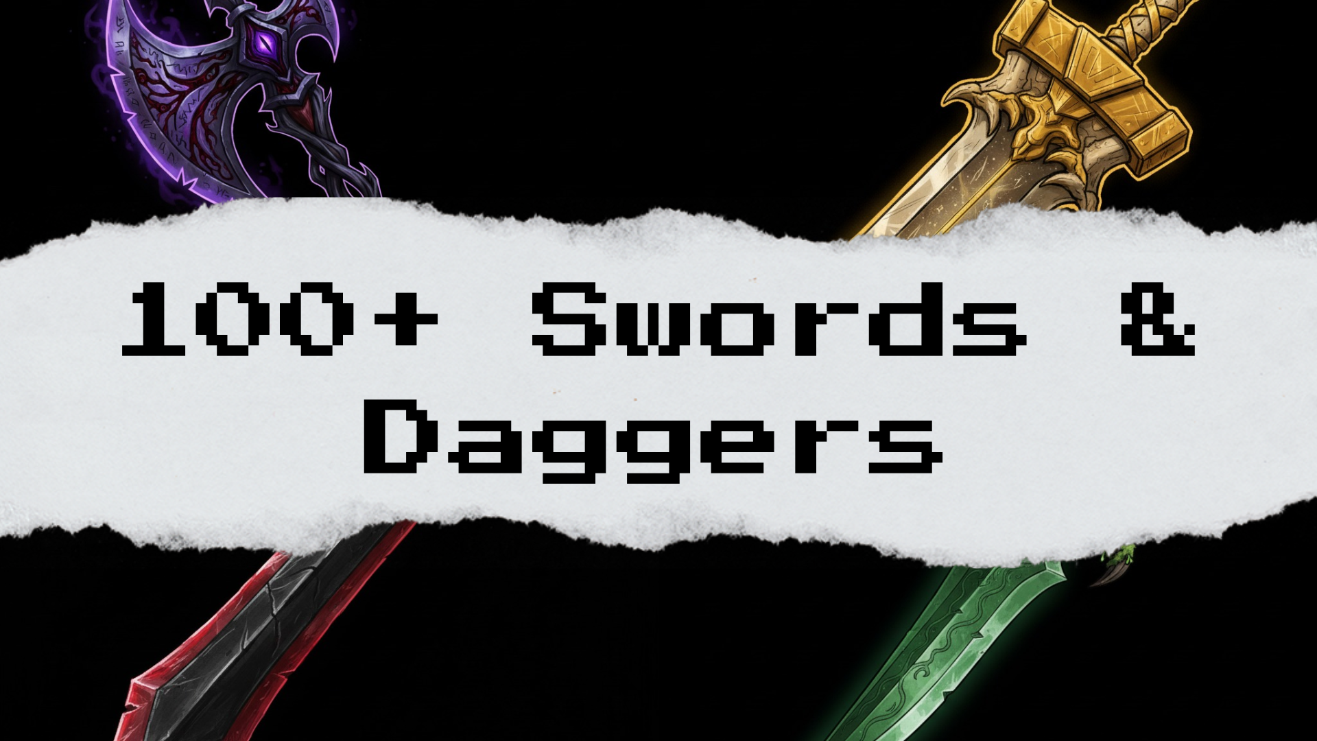Forge a blade-filled arsenal with this complete pack of 100 sword and dagger icons! From knightly longswords and brutal greatswords to nimble rapiers, katanas, scimitars, throwing knives, and stealthy dirks, this collection delivers a wide range of high-quality digital illustrations perfect for RPGs, roguelikes, action, strategy, and fantasy games. Elevate your game’s UI with cohesive, readable 2D weapon icons designed for inventory grids, equipment screens, crafting menus, loot drops, and in-game shops. Optimized for clarity at small sizes and ready to import into Unity, Unreal Engine, Godot, and more. Check out a free sample pack here: Free Blades Sample.
