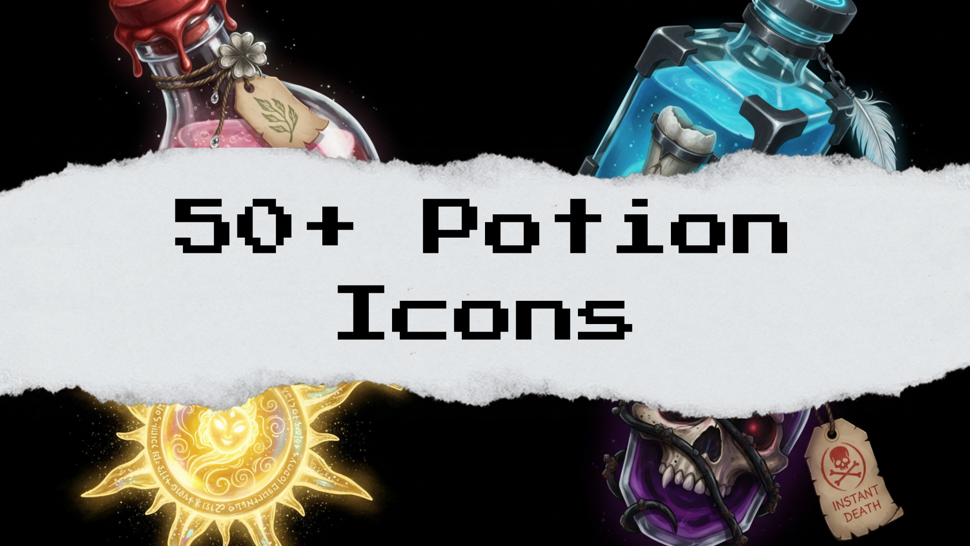 Power up your game’s UI with this pack of 50+ potion icons designed for clear, readable interfaces. From clutch health and mana elixirs to antidotes, elemental resistance, invisibility, and more—this icon set covers inventories, crafting screens, loot drops, and in‑game shops.